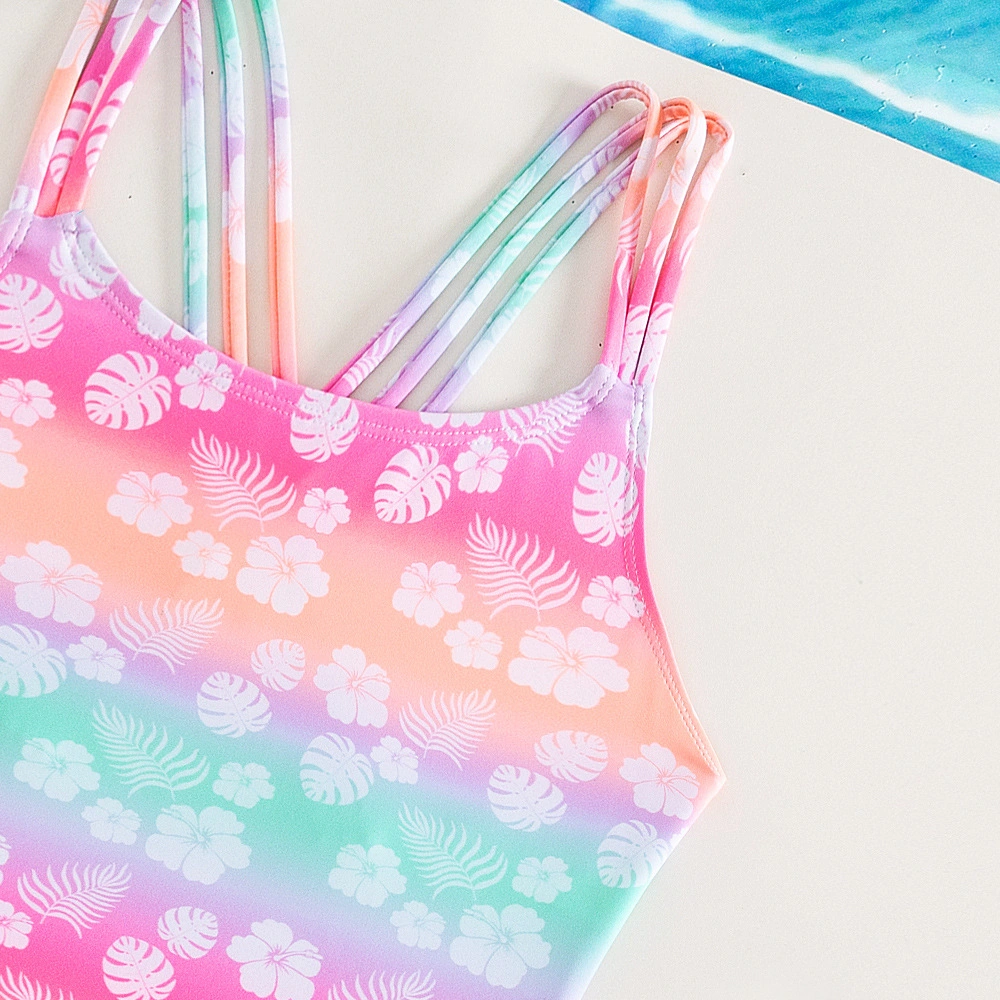 | Product name | 2024 New Gradient Color Printing One Piece Girl’s Swimsuit With Cross Thin Shoulder Straps |